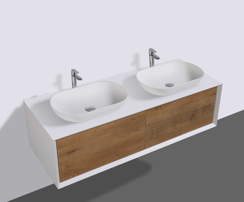 Ella Wall-Mounted Double Bathroom Vanity Set – Matte White, Push-Open Drawers, MDF Lacquered Countertop