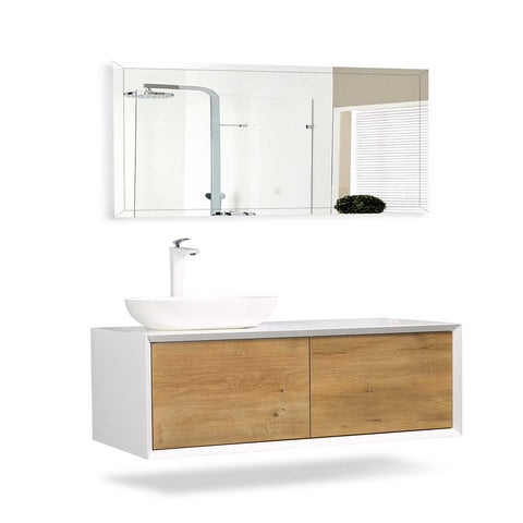 Design: matte white cabinet with wood color panel, creation of classics; seamless splicing integrated paint cabinet; built-in 45° beveled edging with ringing surface, delicate on each side Handle: 45°oblique hidden handle to prevent bumps and scratches. High hardness, scratch resistance, high flatness basin.
